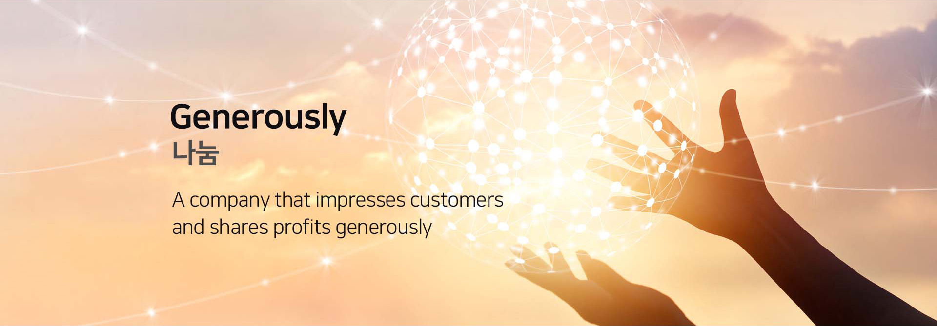 올바른 원칙대로 신뢰를 바탕으로 모든 이에게 감동을 팔며 수익을 아낌없이 나누는 기업,